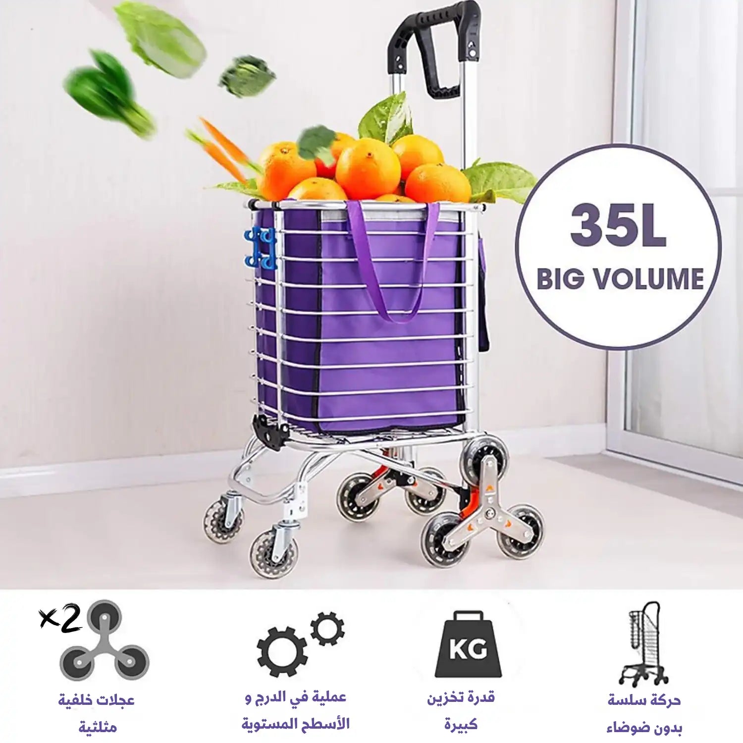 ثلاث عجلات دوارة لتسهيل صعود ونزول السلالم، موفرة للجهد بشكل كبير.