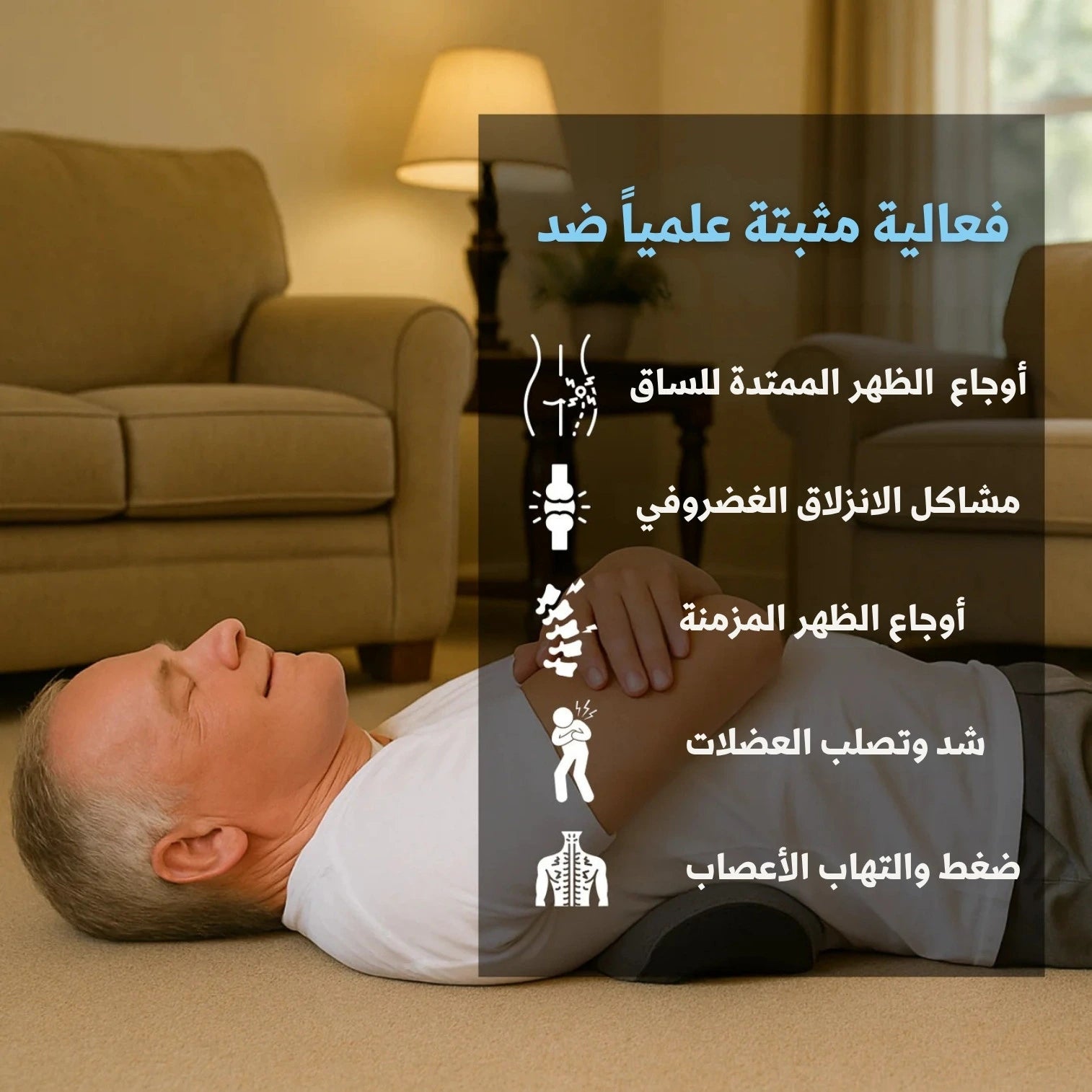 92% من المستخدمين شعروا بـتخفيف موجّه لآلام الظهر يحاكي أثر فكّ الضغط الفقري؛ بفضل الرفع اللطيف وتقنية الشدّ التمدّدي للوسادة.